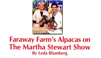 Martha Stewart’s crew spent two days filming a wide variety of scenes including feeding and care, shearing, and the creation of an alpaca garment from fleece to finished product. View the video.